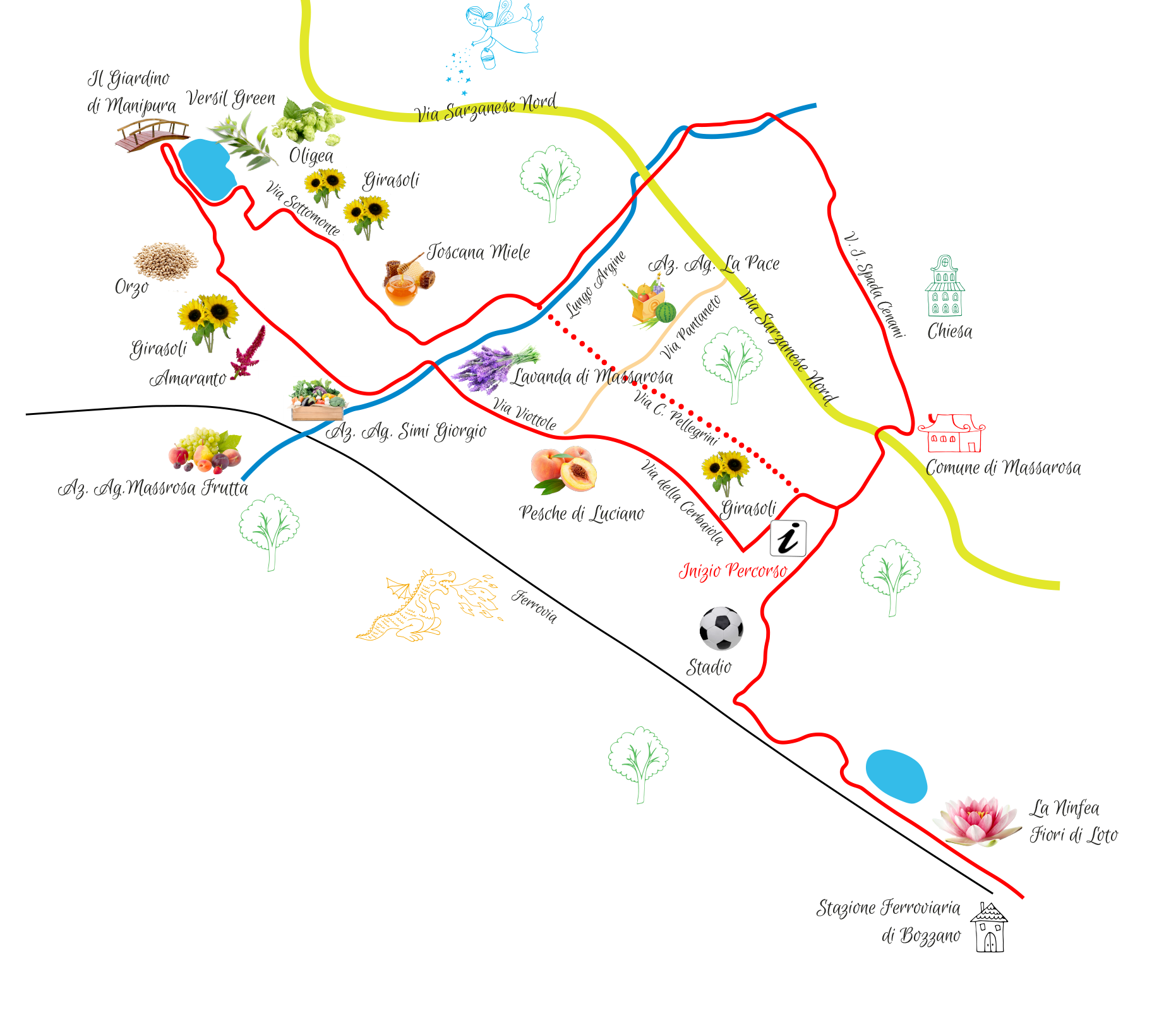 Percorso di 5km alla scoperta delle eccellenze del territorio di Massarosa. Partendo dal centro del paese, si percorreranno strade bianche o secondarie, visitando aziende agricole e florovivaistiche, con possibilità di acquisto dei prodotti, e godendo di paesaggi naturalistici di notevole interesse ecologico e ambientale.