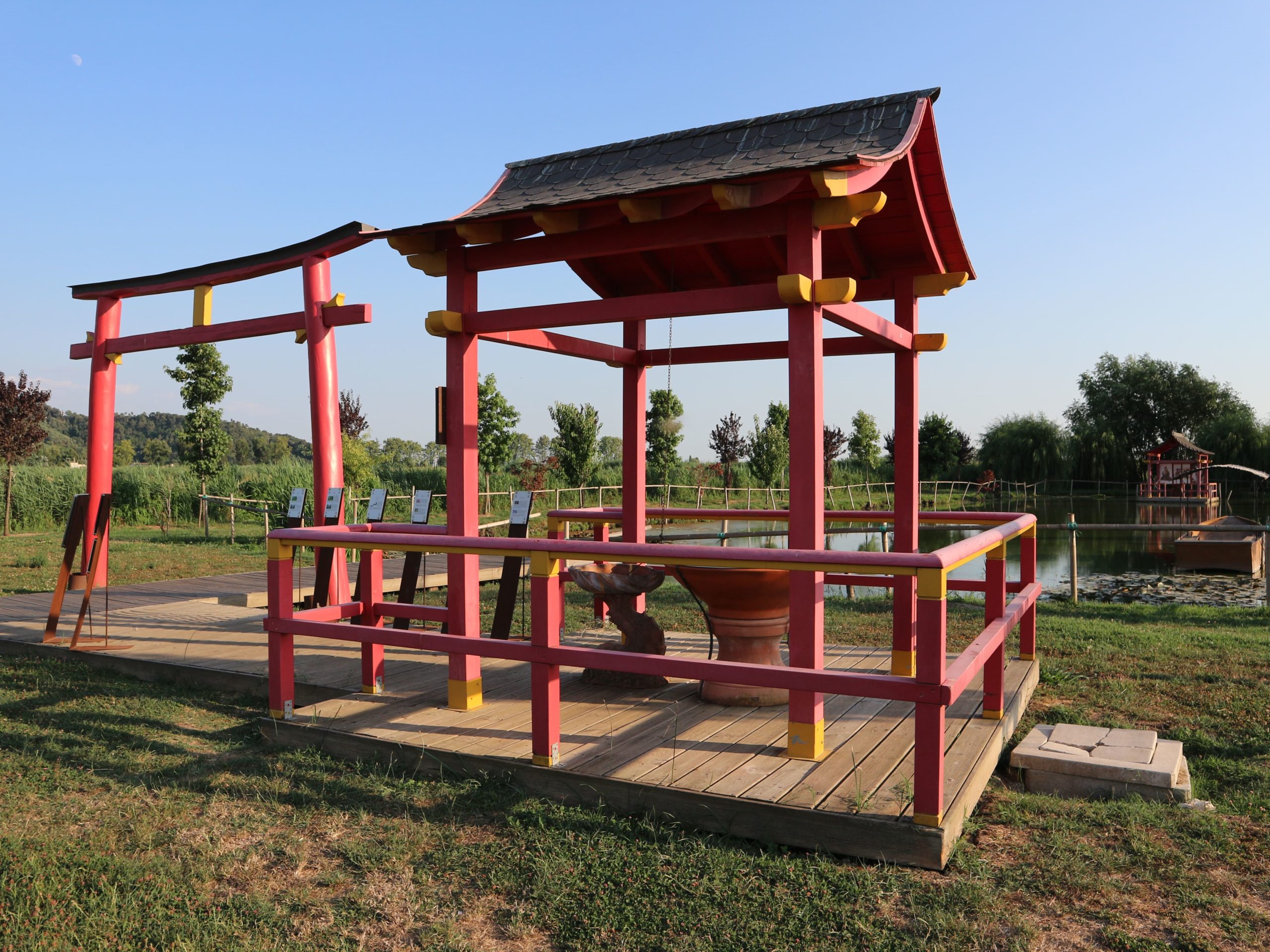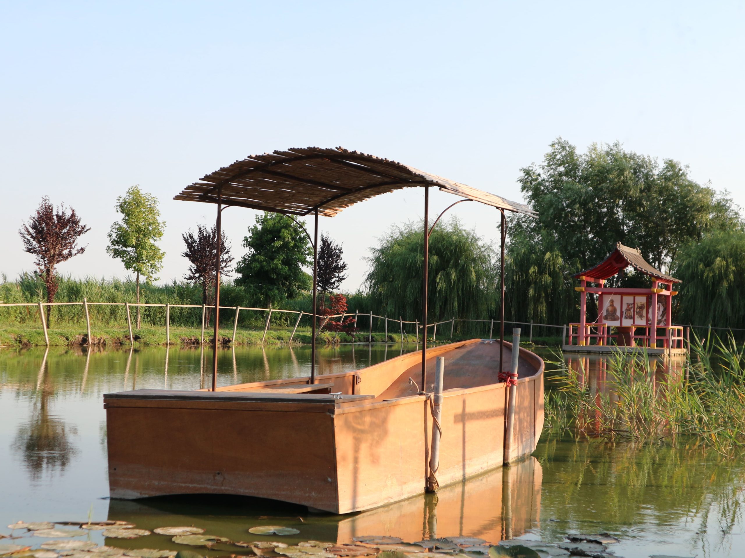 Rilassarsi al “Tempio galleggiante”, una pagoda rossa in mezzo ad un laghetto. Raggiungibile in pochi minuto a piedi, su stradello sterrato.