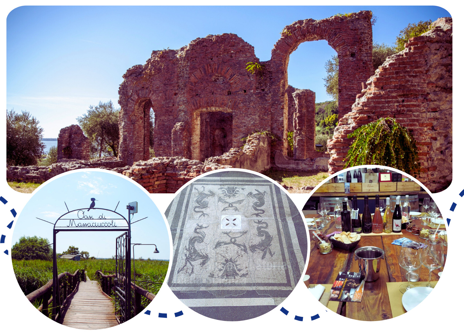 Dopo la Tappa all’Area Archeologica Massaciuccoli Romana e degustazione di vino nella ricetta Latina tramandata da Apicio, rientreremo alle vigne del Segreto avventurandoci sui camminamenti dell’Oasi lipu, una zattera e gli argini del Padule.